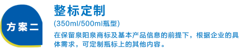 兩種定制方案靈活可選,為您量身定做企業(yè)專(zhuān)屬的長(zhǎng)白山天然礦泉水,展現(xiàn)企業(yè)個(gè)性,彰顯企業(yè)文化,提升企業(yè)形象,助力商務(wù)成功!